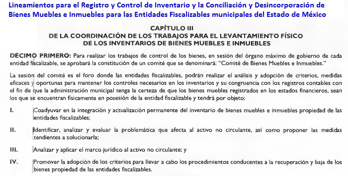Lineamientos para el Registro y Control del Inventario y la Conciliación y Desincorporación de Bienes Muebles e Inmuebles para las Entidades Fiscalizables municipales del Estado de México