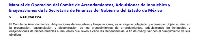 Manual de Operación del Comité; de Arrendamientos, Adquisiciones de Inmuebles y Enajenaciones de la Secretaría de Finanzas del Gobierno del Estado de México